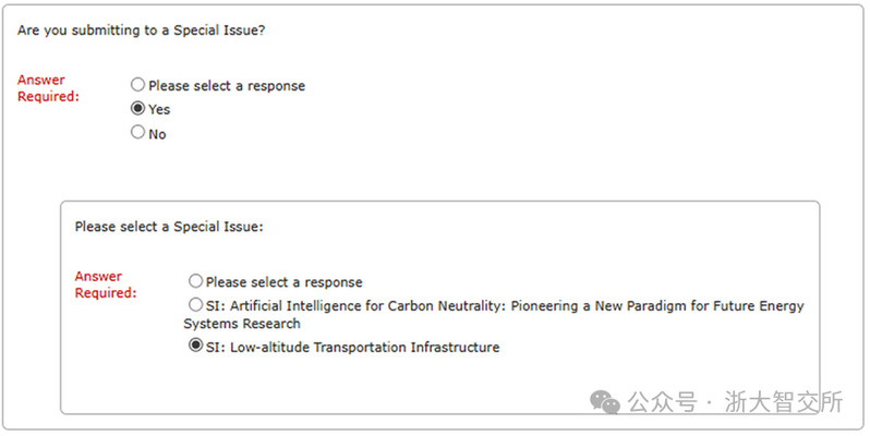 请务必在Additional Information这一步骤中选择文章属于专辑SI: Low-altitude Transportation Infrastructure这一选项。